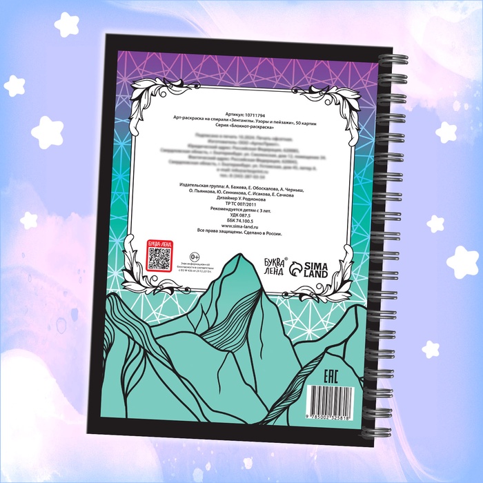 Раскраска - арт на спирали «Зентанглы. Узоры и пейзажи», 50 картин 6 фото