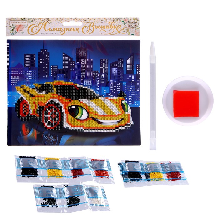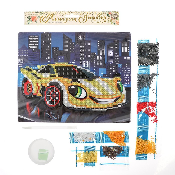Алмазная мозаика с частичным заполнением для детей «Жёлтая тачка», 20×25 см 8 фото