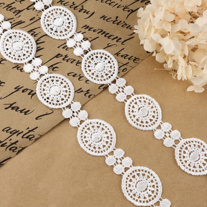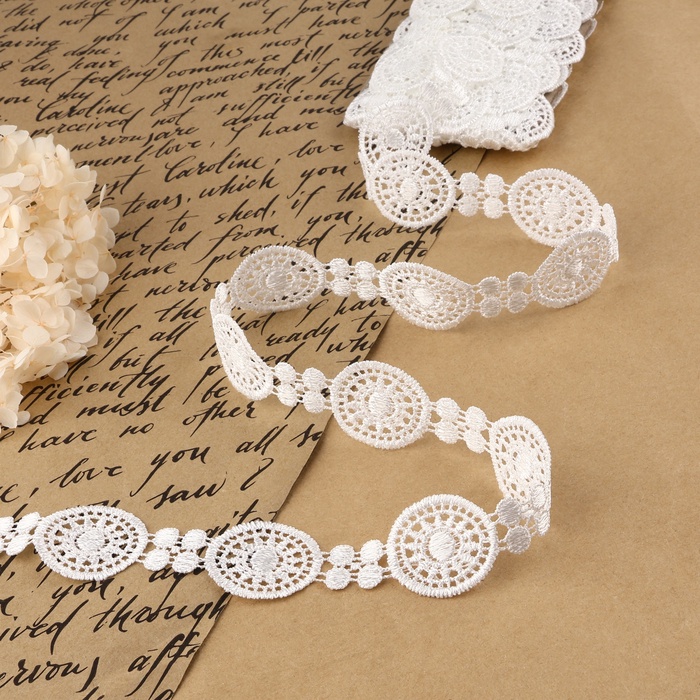 Кружево гипюровое, 30 мм × 8±0.5 м, белое 3 фото