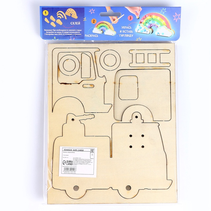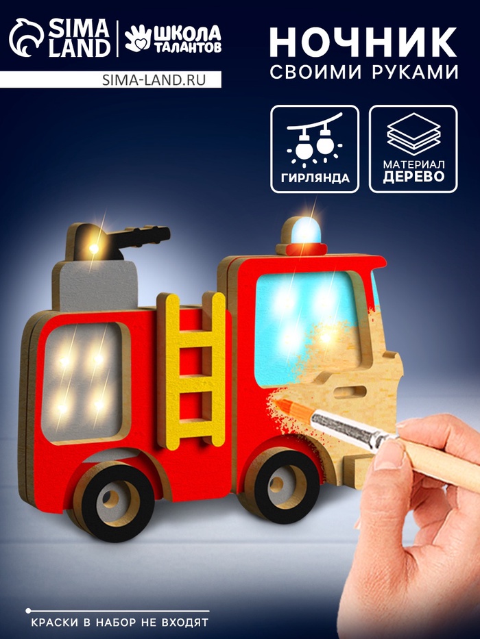 Ночник своими руками деревянный «Пожарная машина», набор для творчества 4 фото