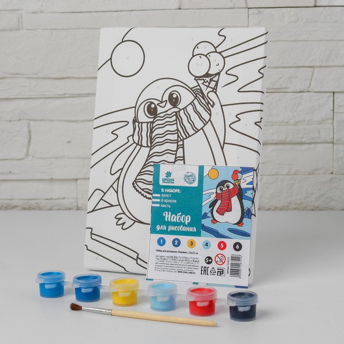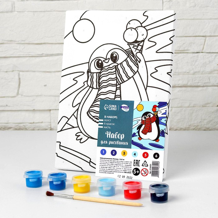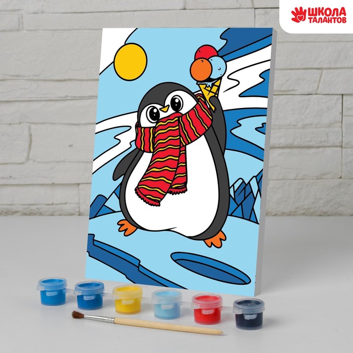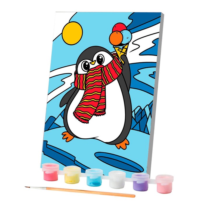 Картина по номерам на холсте с подрамником на новый год «Пингвин», 21×15 см 5 фото