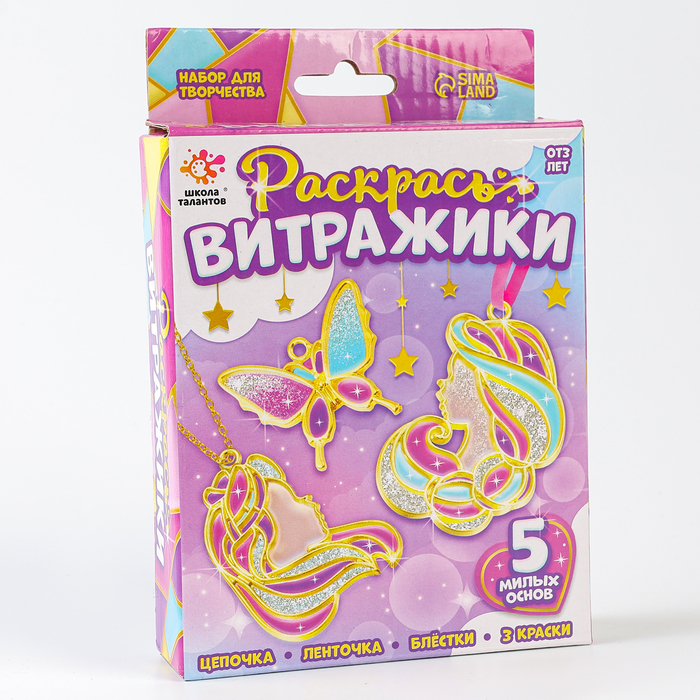 УЦЕНКА ШКОЛА ТАЛАНТОВ Набор для творчества Раскрась витражики, единороги 5 форм