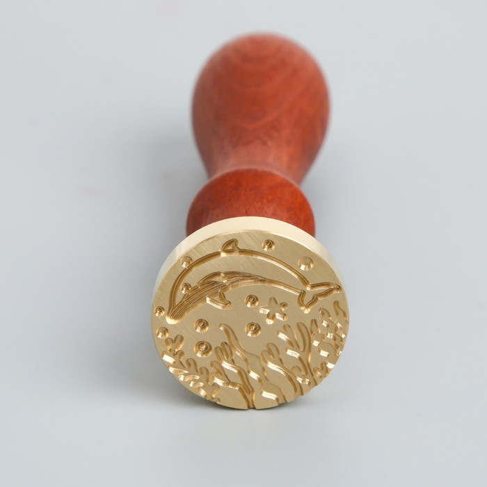 Печать для сургуча с деревянной ручкой «Дельфин и кораллы», 9×2.5×2.5 см 4 фото