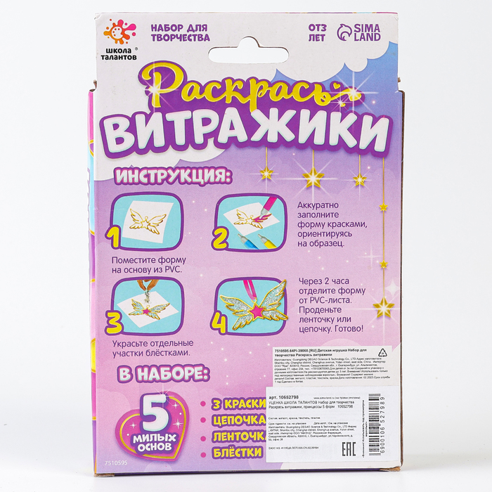 УЦЕНКА Набор для творчества Раскрась витражики, принцессы 5 форм 3 фото