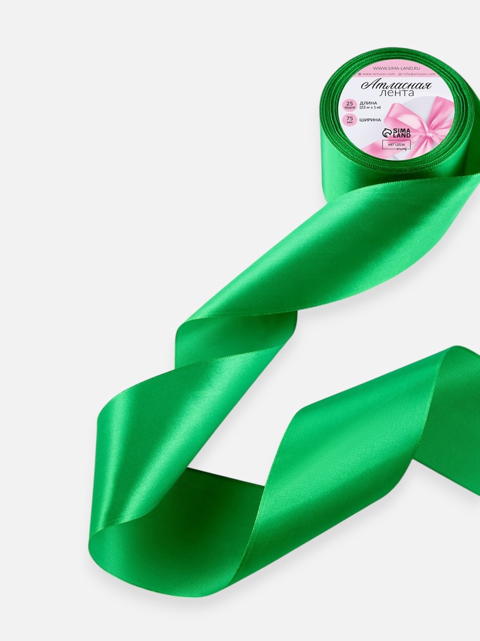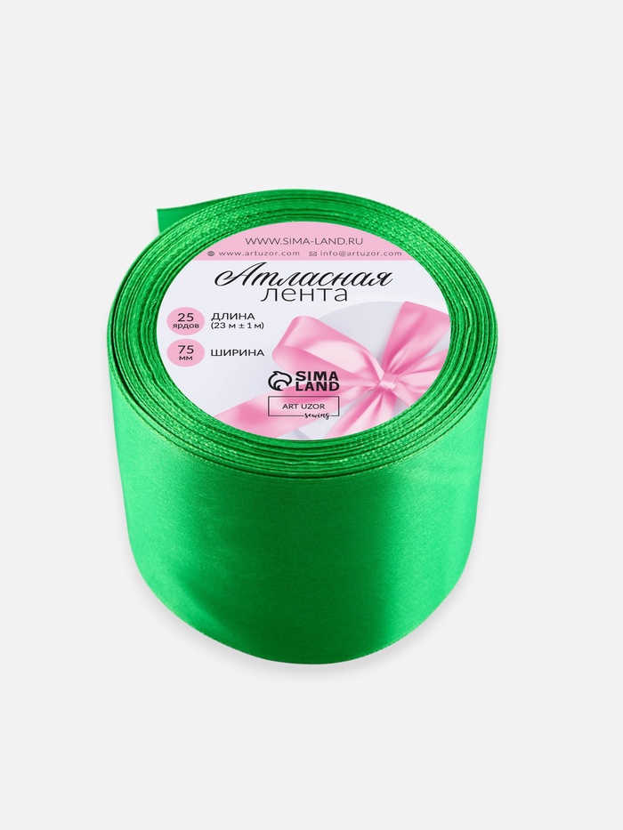 Лента атласная, 75 мм, 23±1 м, зелёная №19 7 фото