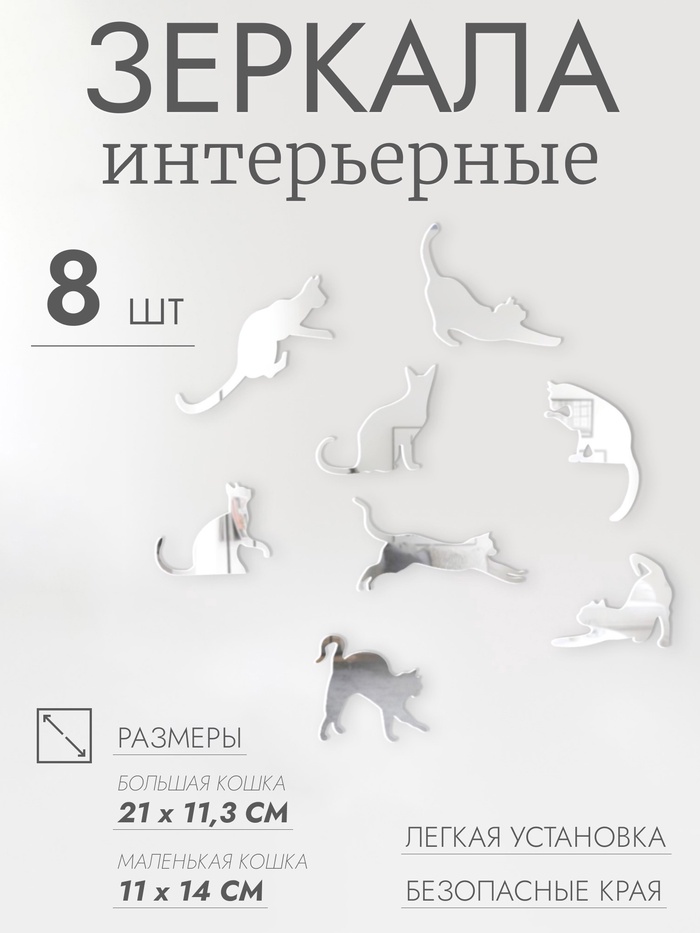 Зеркало настенное «Котики», акриловое, 8 шт., разный размер 3 фото