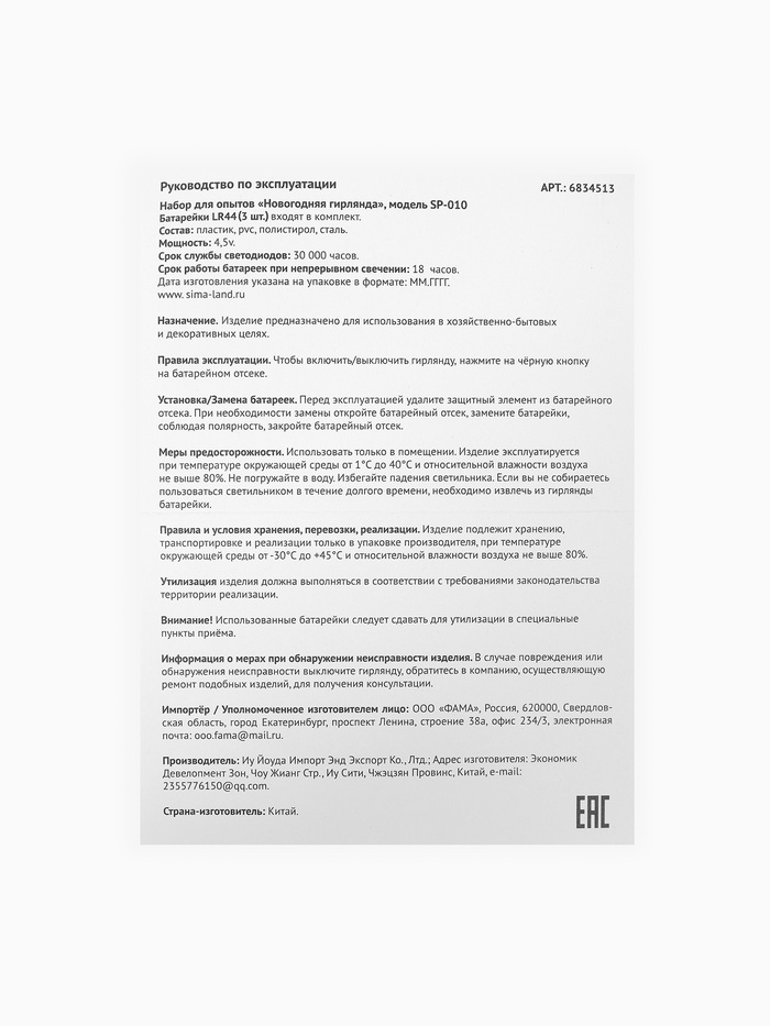 Набор для опытов «Новогодняя гирлянда», с шариками орбиз, работает от батареек 10 фото