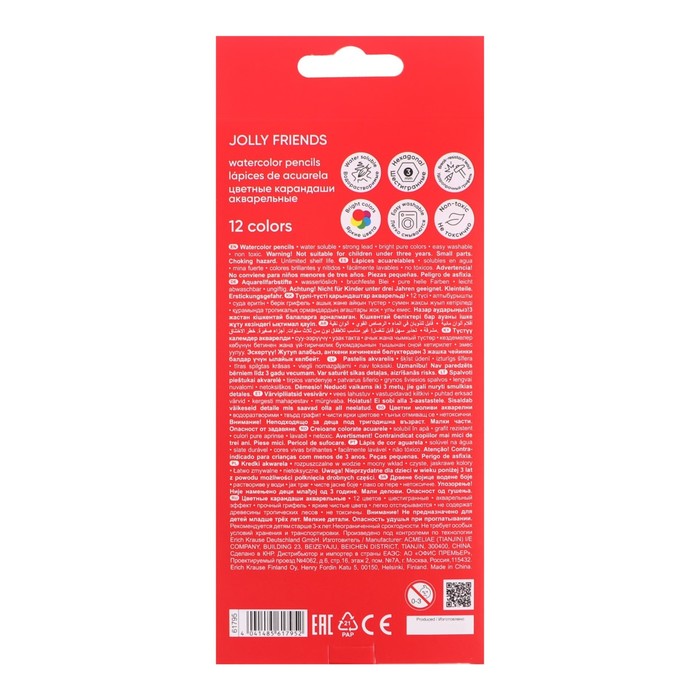 Карандаши акварельные 12 цветов ErichKrause Jolly Friends, дерево, шестигранные с кисточкой, европодвес 6 фото