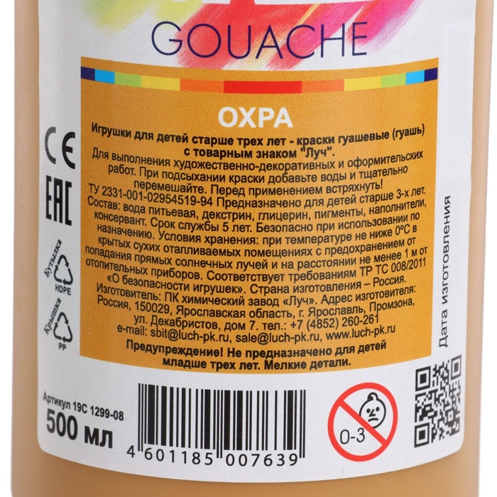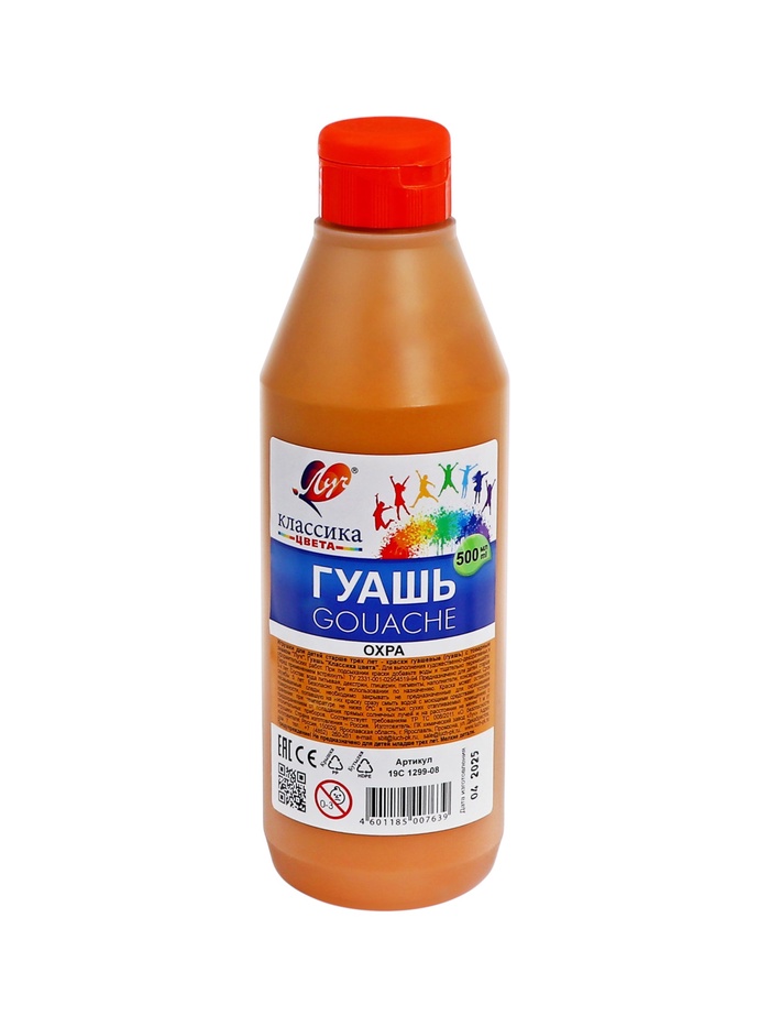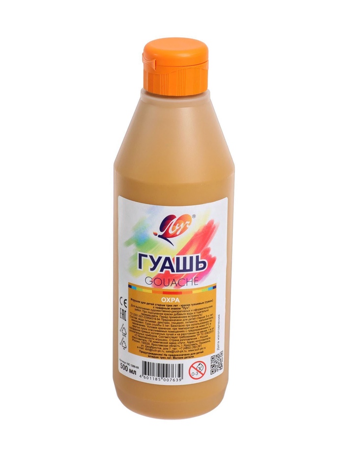 Гуашь «Луч», 500 мл, жёлтая светлая 7 фото