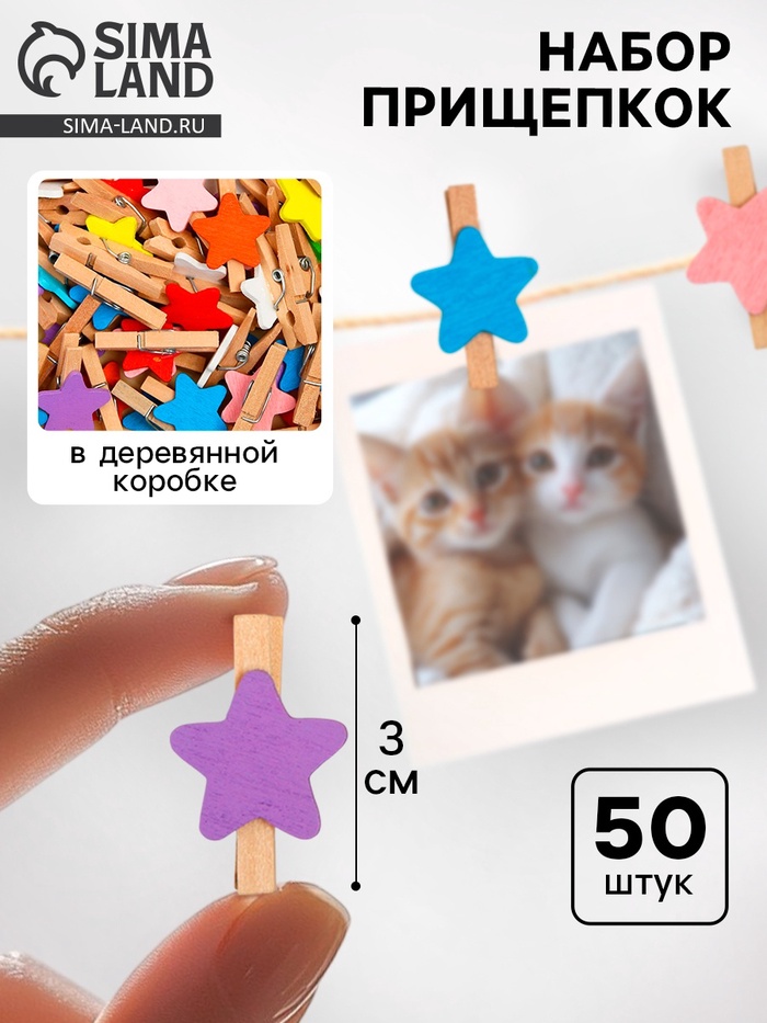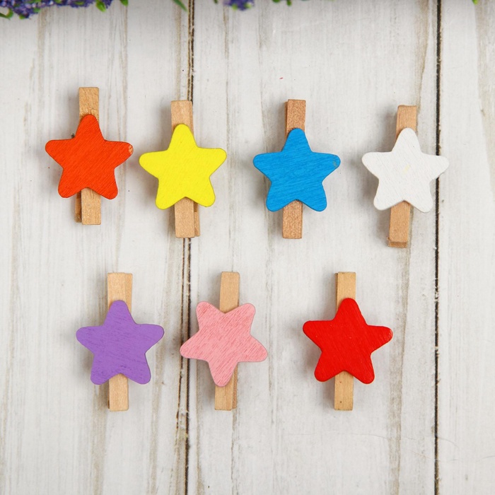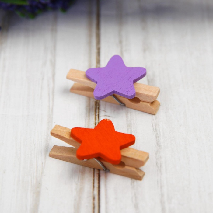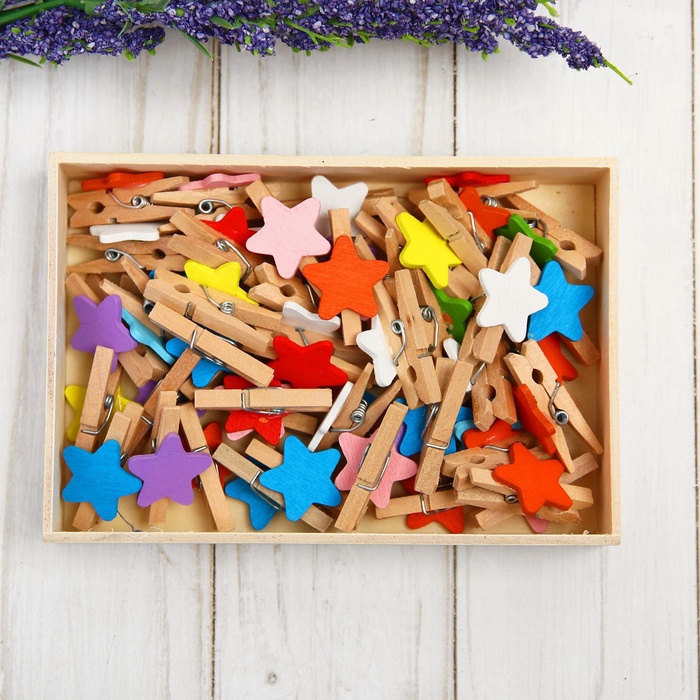 Набор прищепок в деревянной коробке «Звёздочки», набор 50 шт. 5 фото