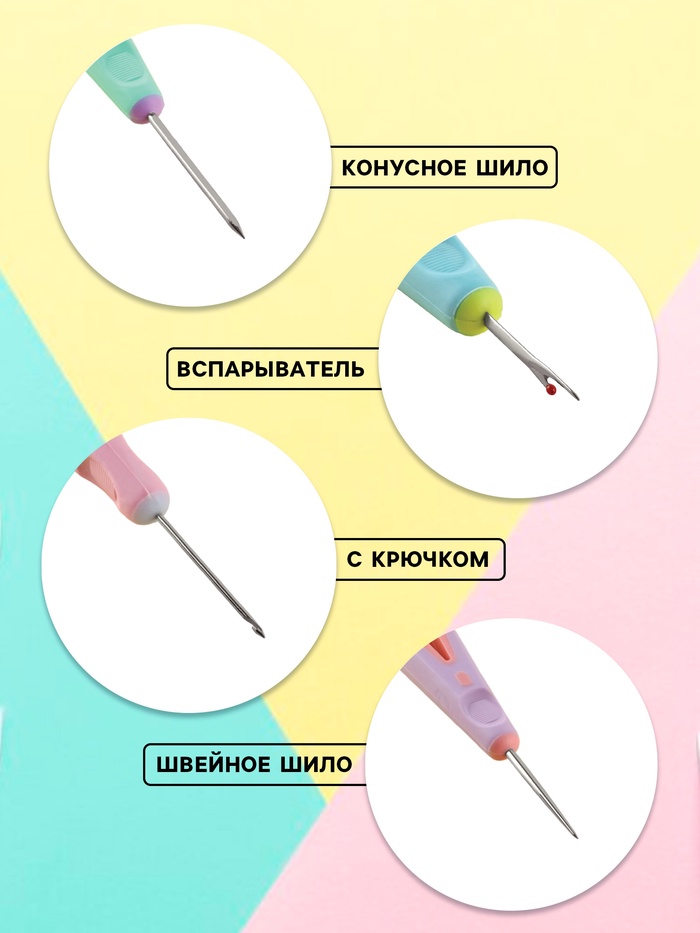 Шило швейное, вспарыватель, набор 4 шт., с прорезиненными ручками 4 фото