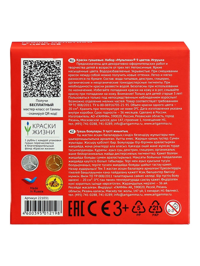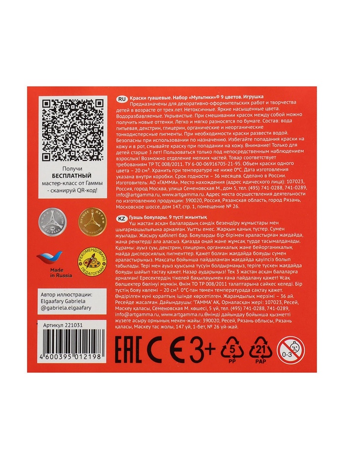 Гуашь 9 цветов × 20 мл «Гамма. Мультики» 8 фото