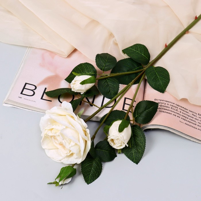 Цветы искусственные «Роза изыск», 10×64 см, белые 2 фото