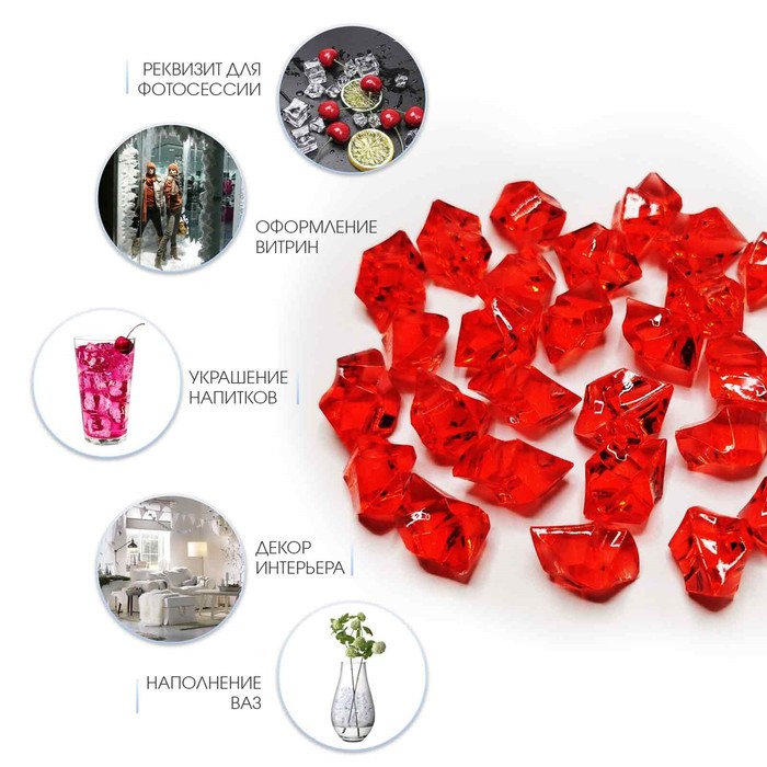 Декор акрил «Искусственный лед», 25×18 мм, 260 шт., красный 5 фото