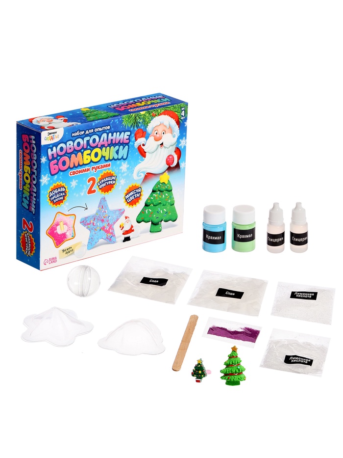 Уценка Бомбочки для ванны своими руками «Новогодние бомбочки Звезда и ёлка», детские, набор для опытов 10 фото
