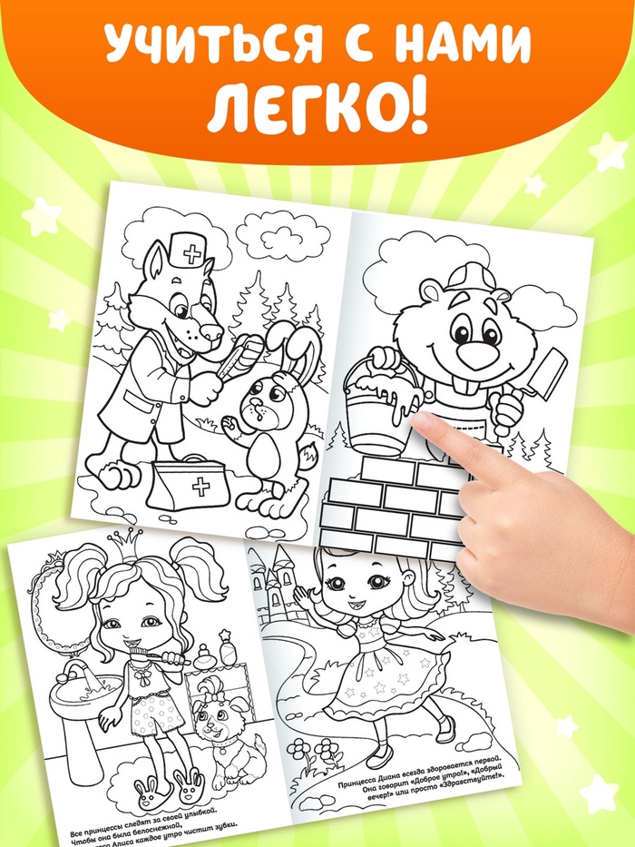Раскраски детские, набор из 10 шт. по 20 стр. 8 фото
