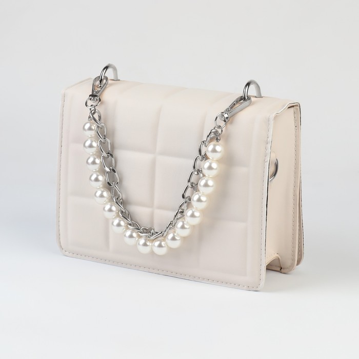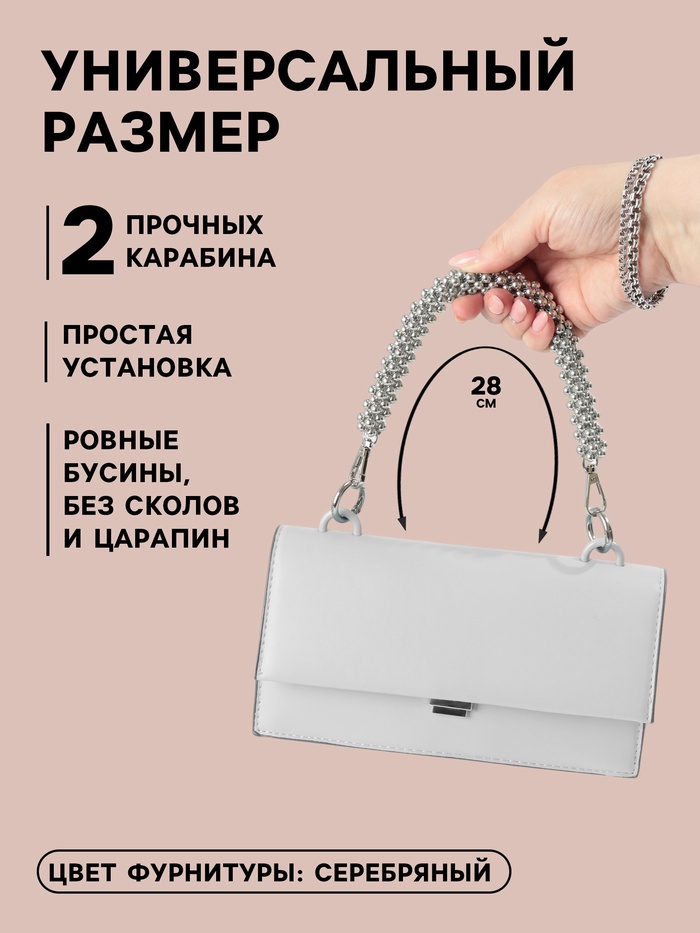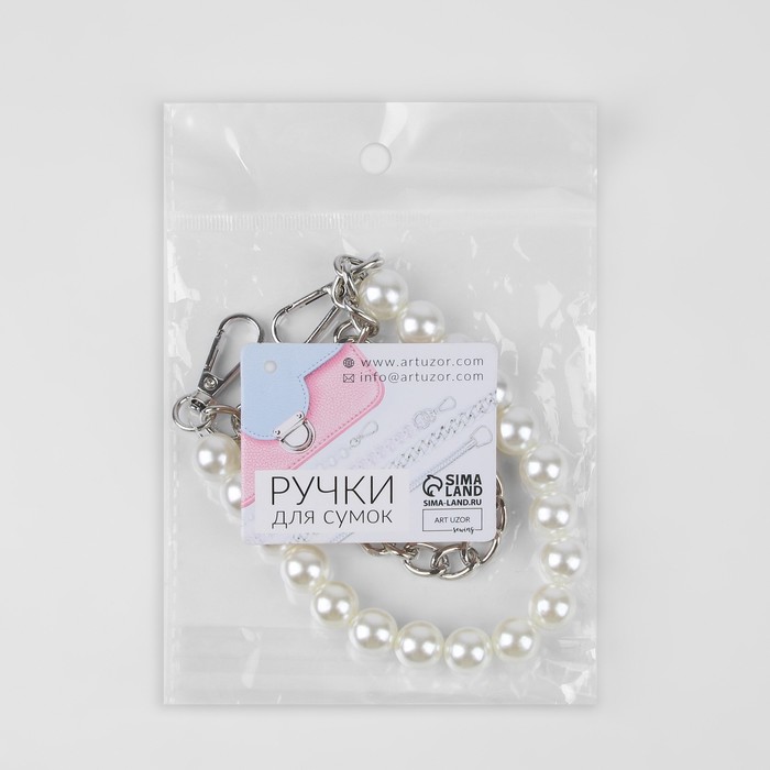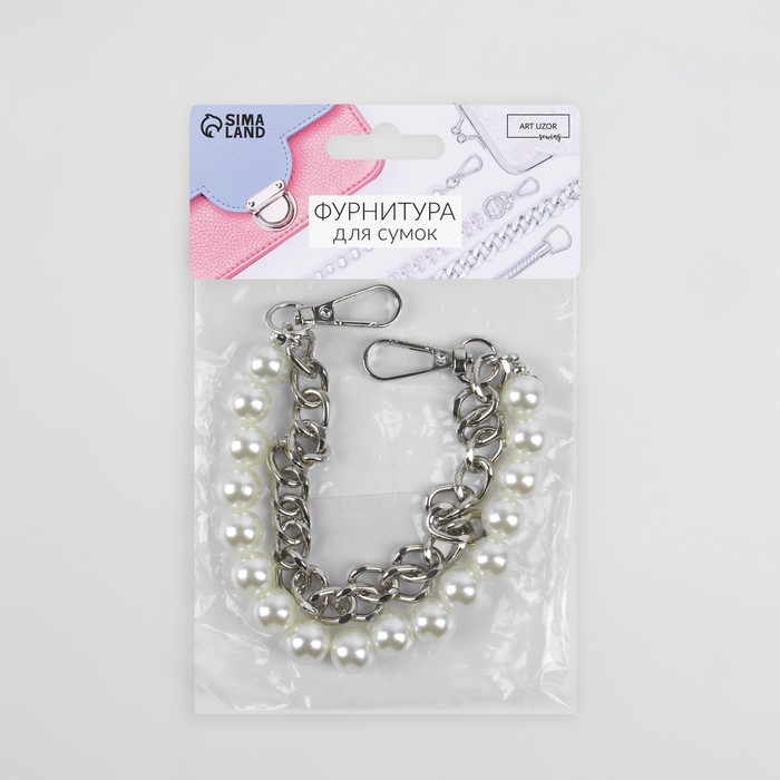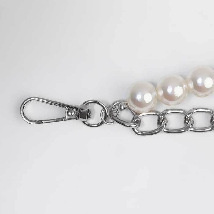 Цепочка для сумки, с жемчугом, d=13±1 мм, 2.3×16×11.5 мм, 29±1 см, цвет серебряный 8 фото
