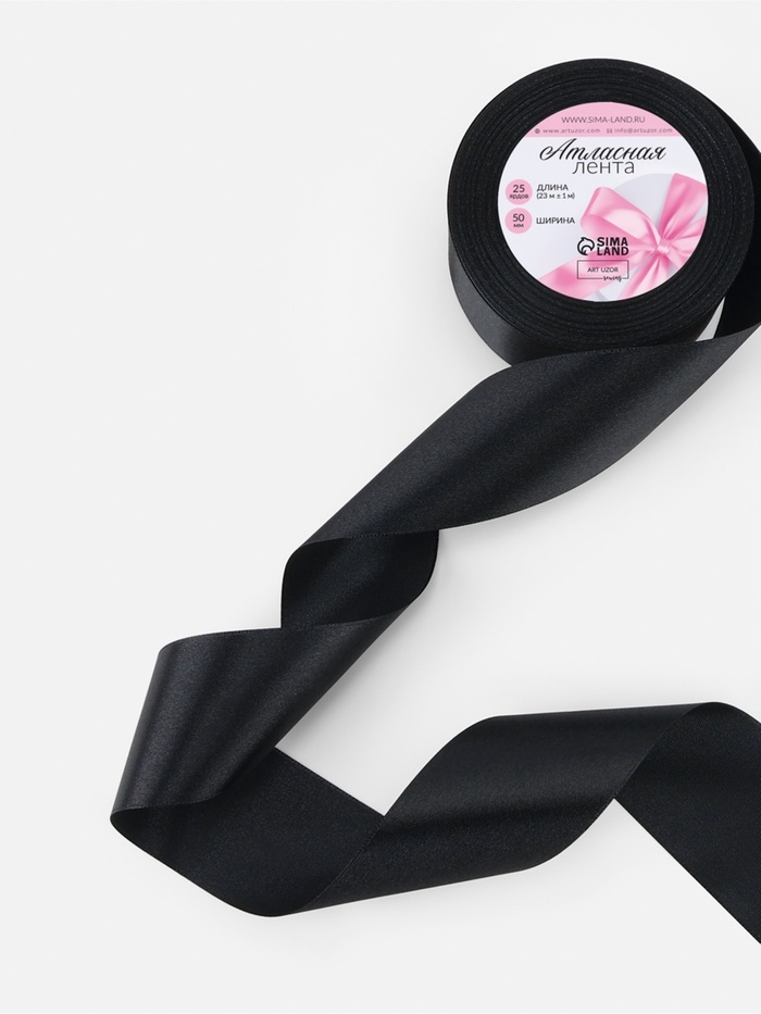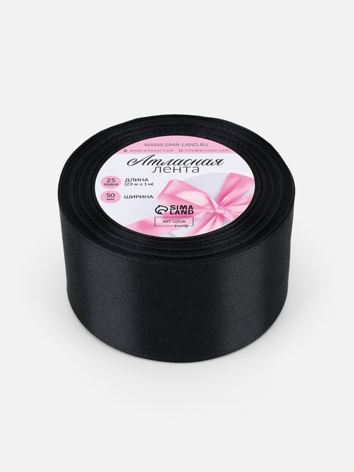 Лента атласная, 50 мм, 23±1 м, чёрная №39 5 фото