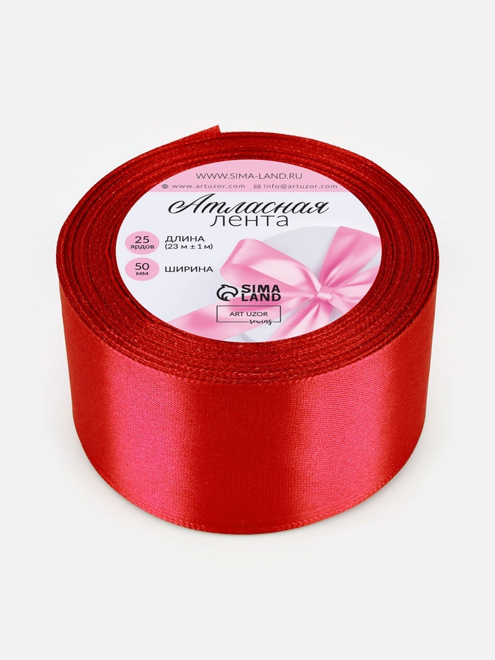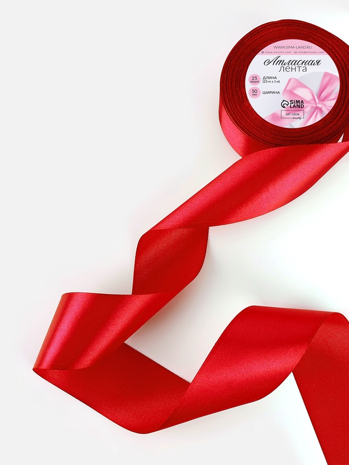 Лента атласная, 50 мм, 23±1 м, красная №26 5 фото