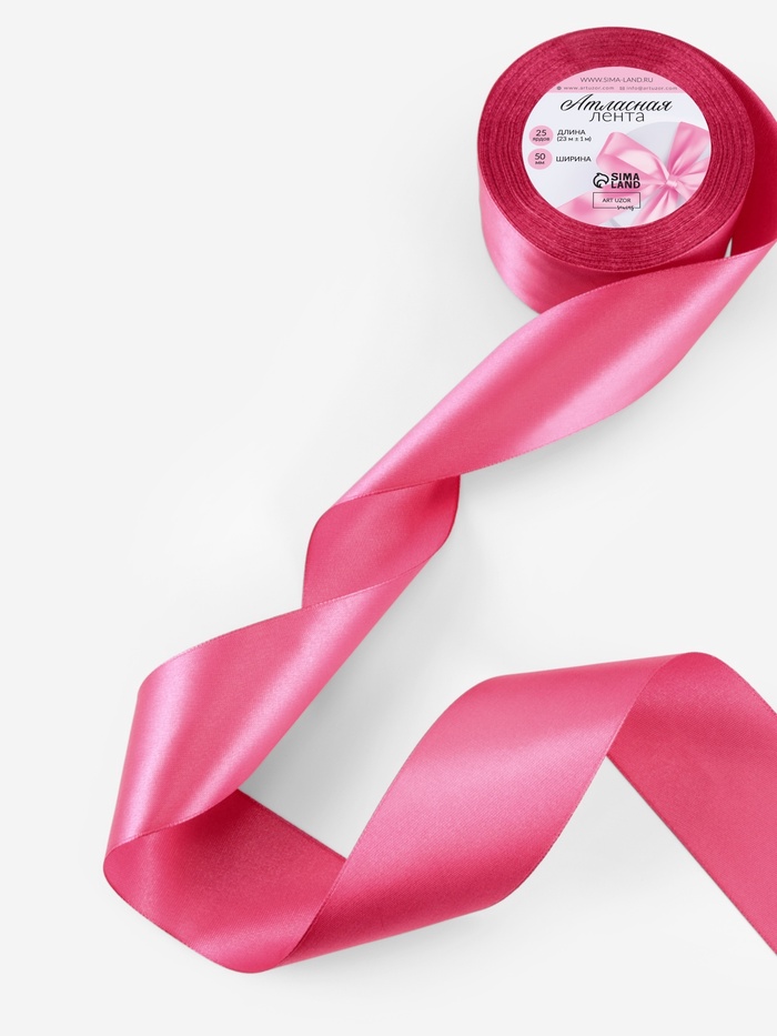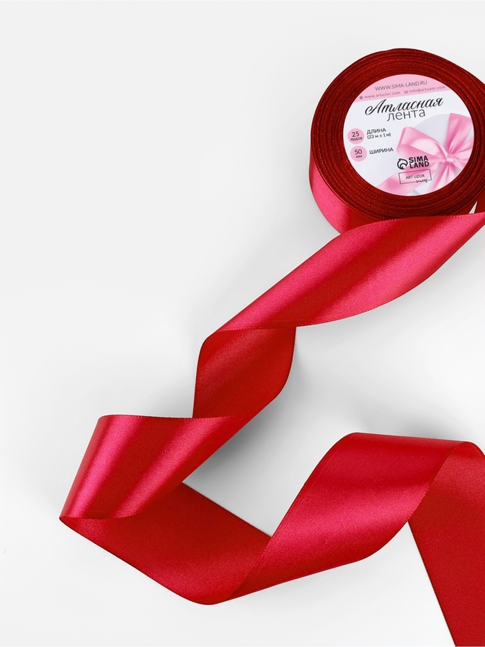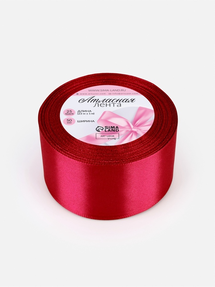 Лента атласная, 50 мм × 23±1 м, малиново-красная №134 5 фото