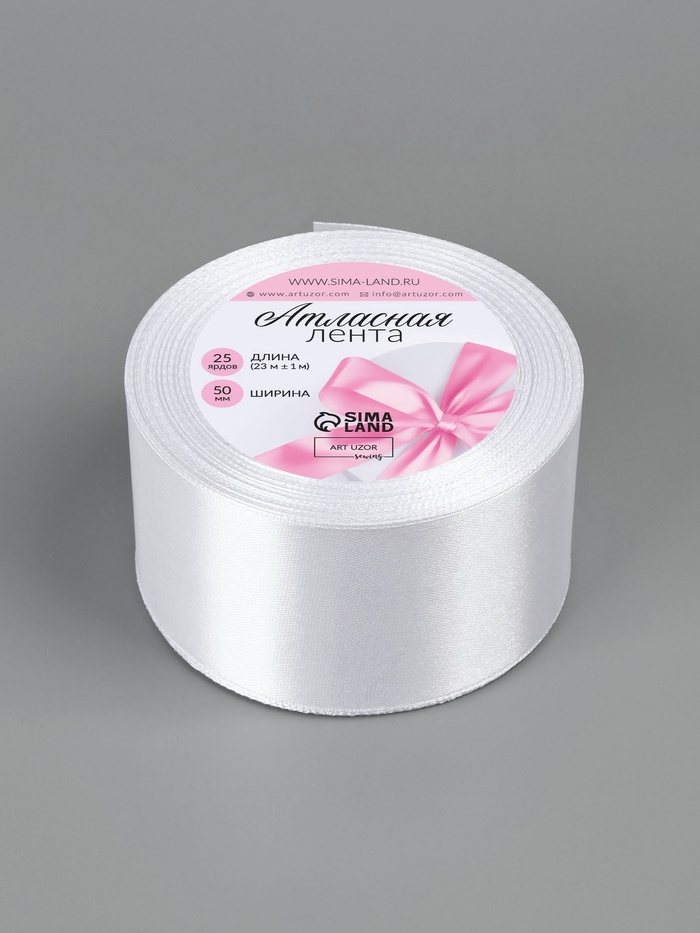 Лента атласная, 50 мм, 23±1 м, белая №01 4 фото