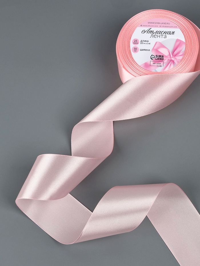 Лента атласная, 50 мм, 23±1 м, нежно-розовая №147 5 фото