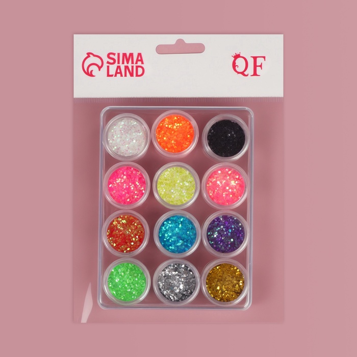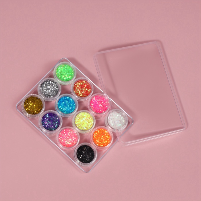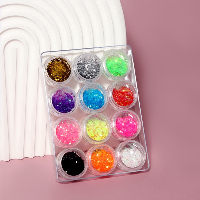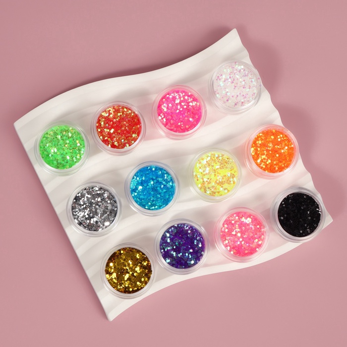 Блёстки для декора, крупные, набор 12 баночек, в пластиковом органайзере, разноцветные 5 фото