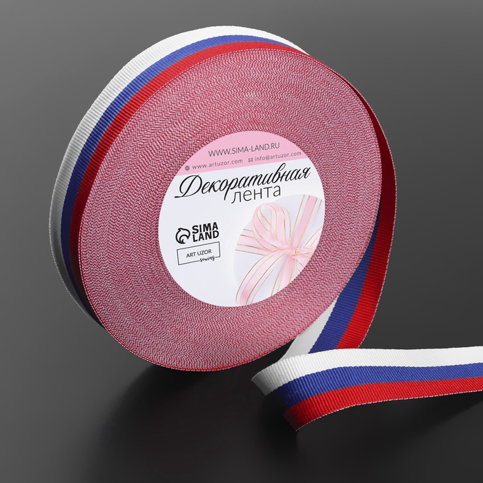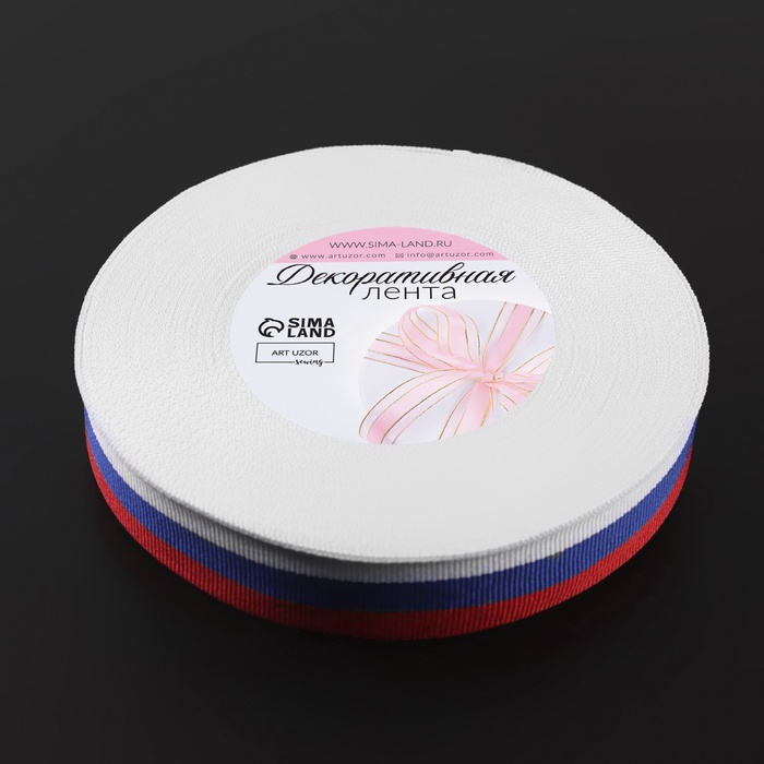 Лента репсовая «Триколор», двусторонняя, 20 мм, 23±1 м 3 фото