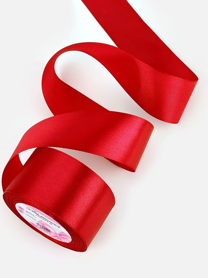 Лента атласная, 50 мм, 23±1 м, красная №33 5 фото