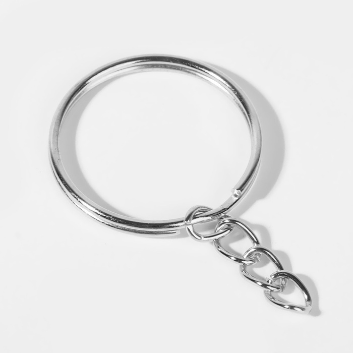 Основа для брелока: кольцо d=25 мм с цепочкой, набор 100 шт., металл под серебро 3 фото