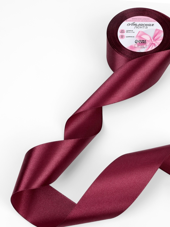 Лента атласная, 50 мм × 23±1 м, винная №165 7 фото
