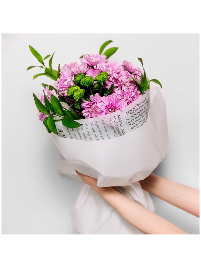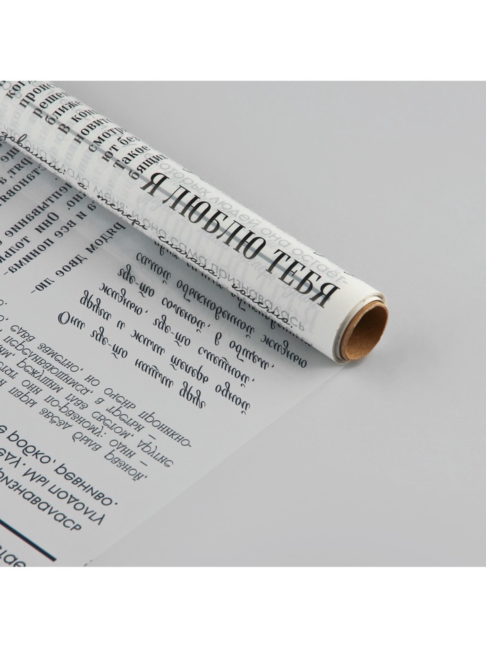 Плёнка для цветов упаковочная матовая прозрачная «Газета», белая, 0.6×10 м 4 фото