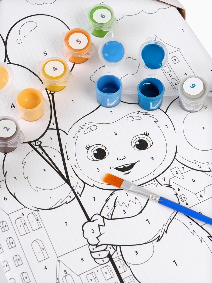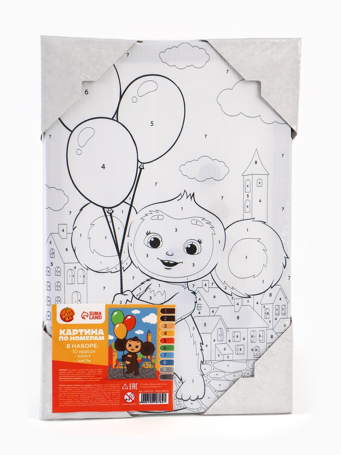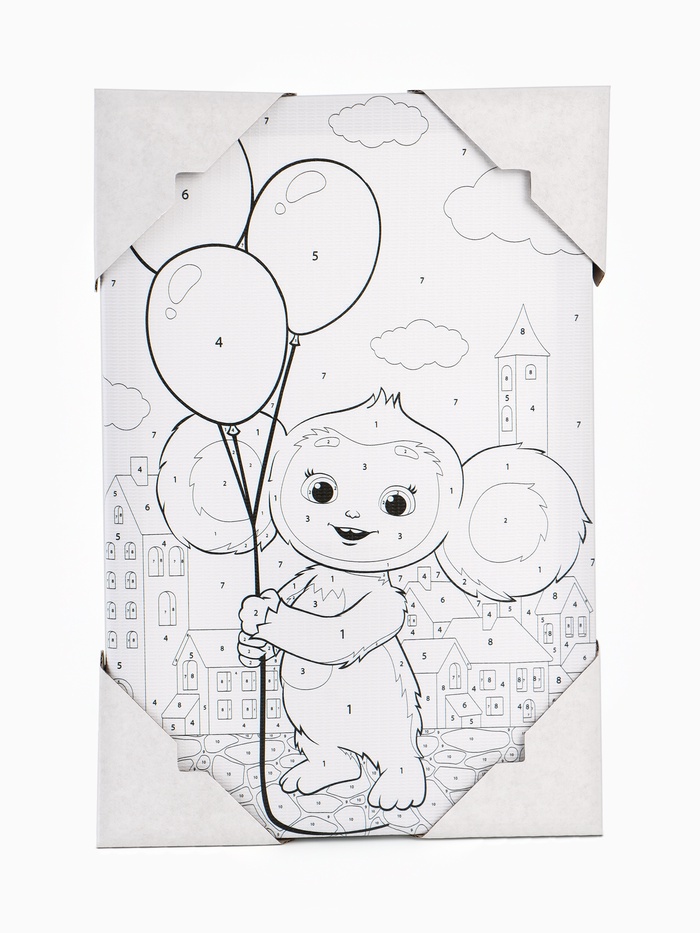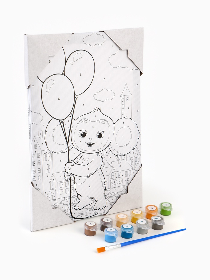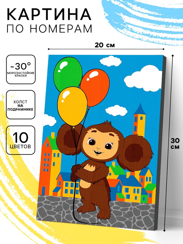 Картина по номерам с подрамником «Чебурашка с шарами», 20×30 см 10 фото
