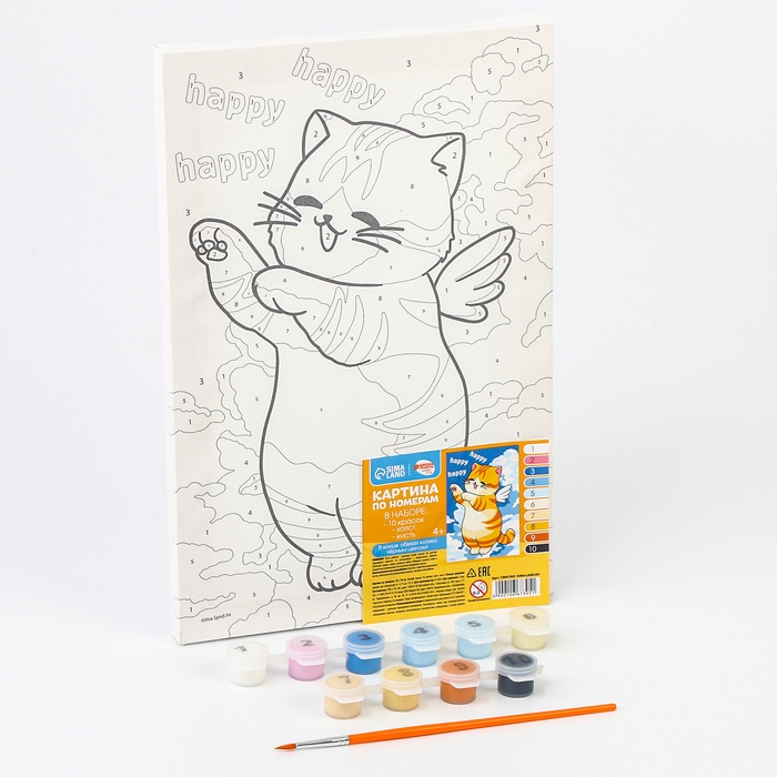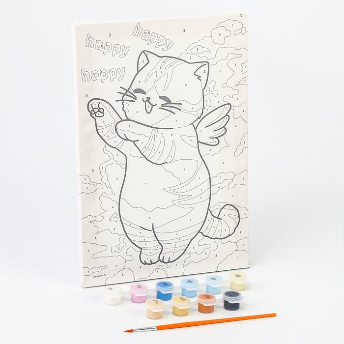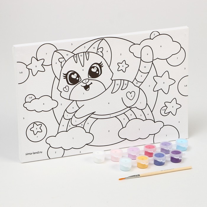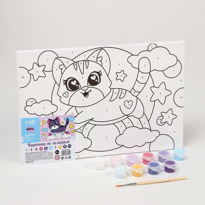 Картина по номерам для детей на холсте с подрамником «Счастливый котик», 20×30 см 6 фото
