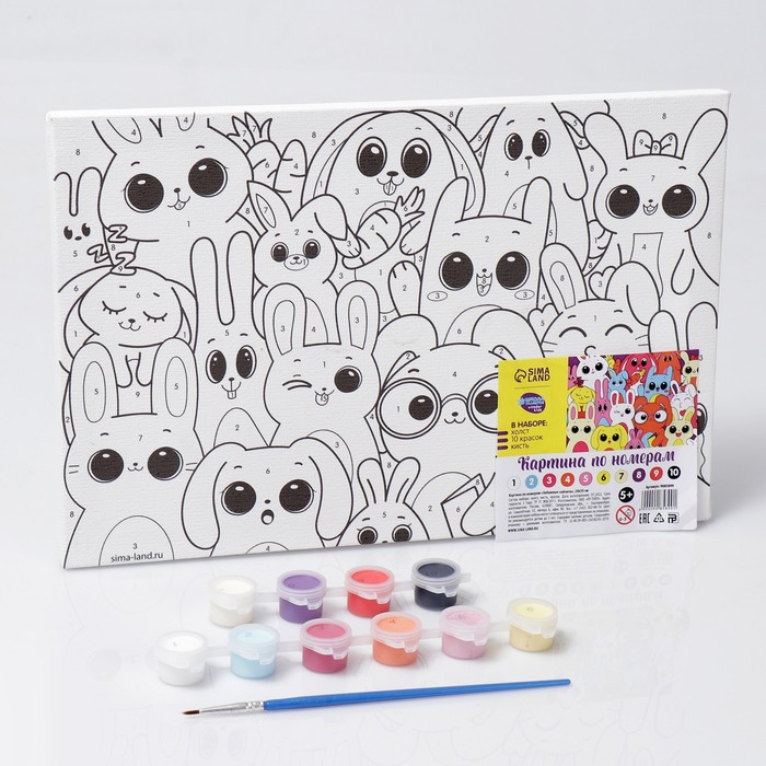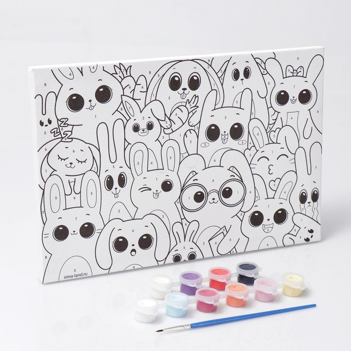 Картина по номерам для детей «Забавные зайчата», 20×30 см 6 фото