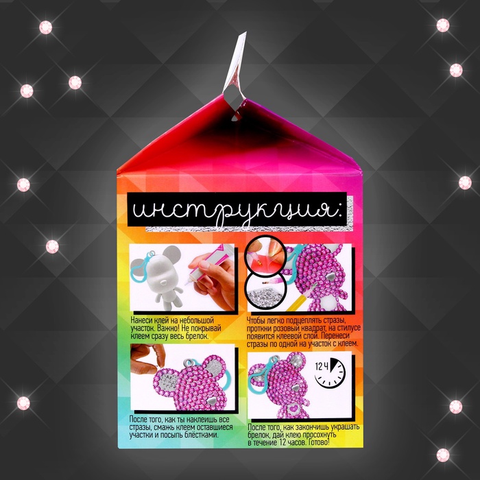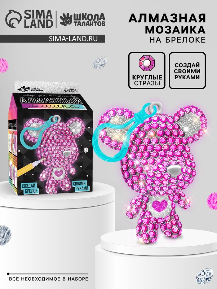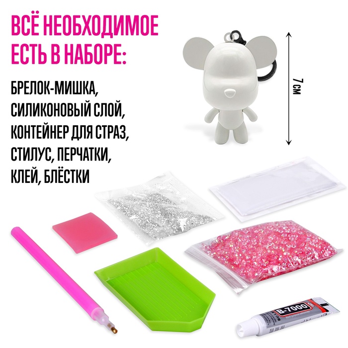 Алмазная мозаика на фигурке «Создай брелок. Алмазный мишка», розовый 4 фото