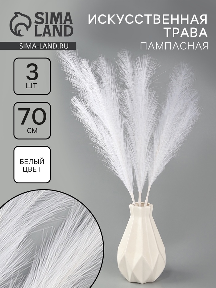 Сухоцветы искусственные «Пампасная трава», 70 см, 3 шт., белый 4 фото