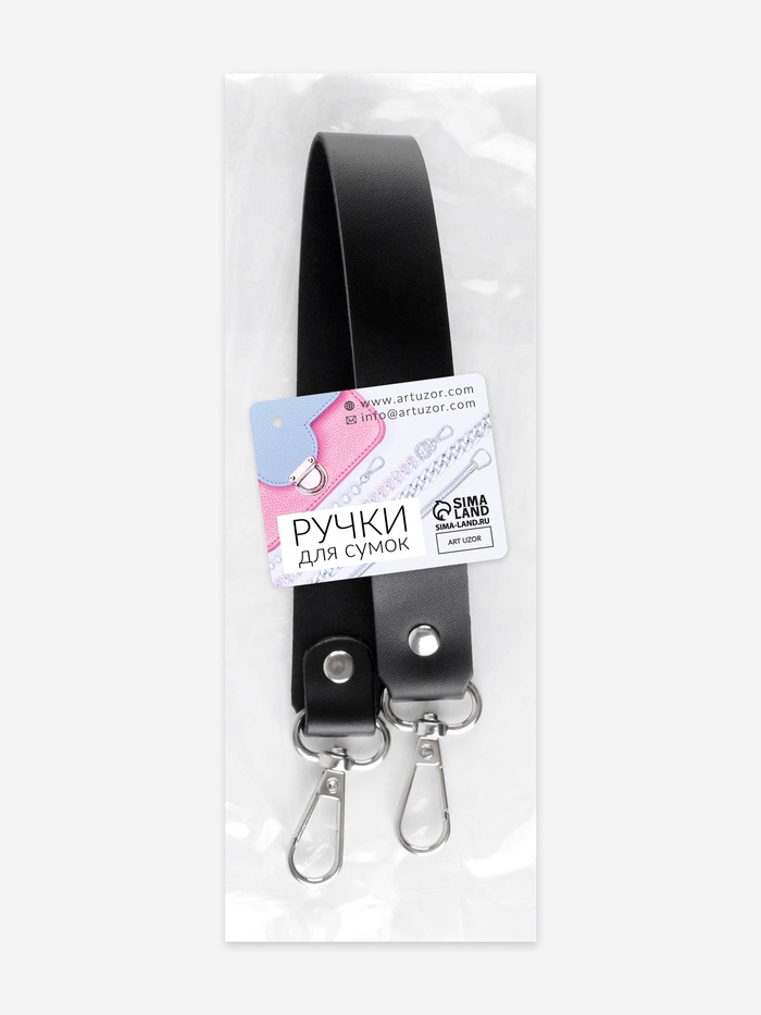 Ручка для сумки из натуральной кожи, с карабинами, 30 ± 2 см × 2.5 см, цвет чёрный/серебряный 6 фото