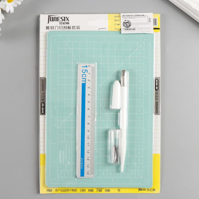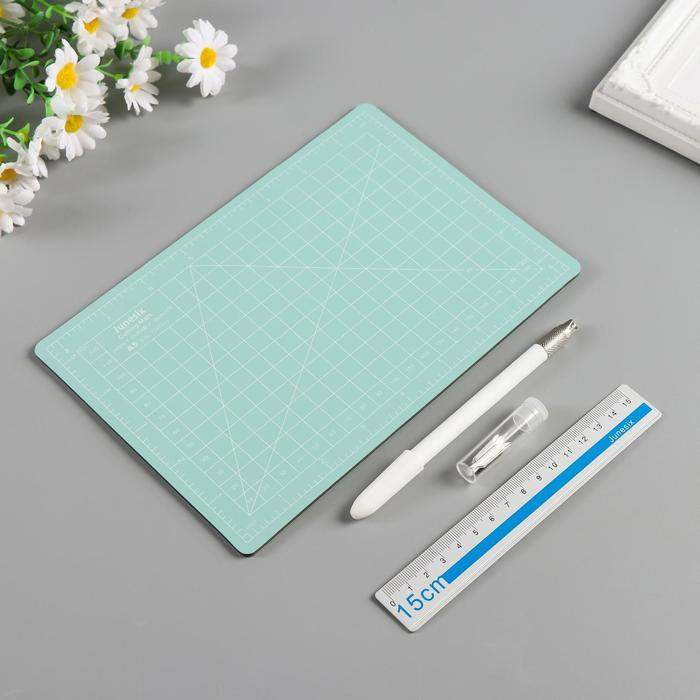 Набор инструментов для творчества: мат А5, нож + 12 лезвий + линейка 15 см 5 фото