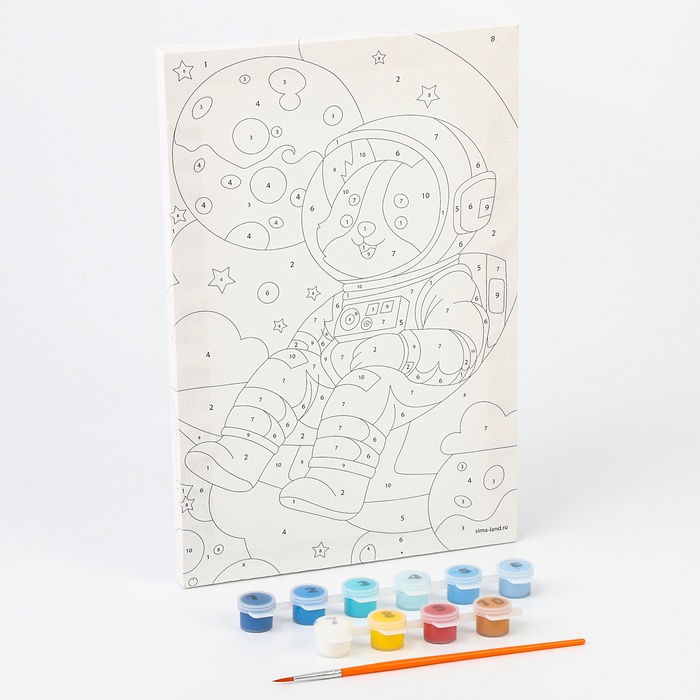 Картина по номерам для детей на холсте с подрамником «Корги космонавт», 20×30 см 6 фото