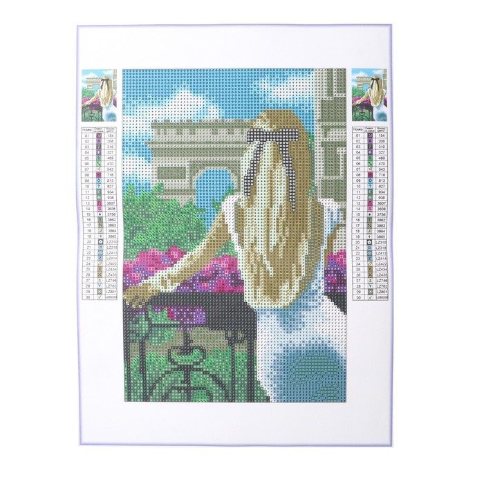 Алмазная мозаика с полным заполнением на холсте «Девушка на балконе», 20×30 см 6 фото
