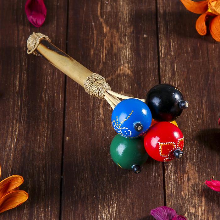 Сувенирный музыкальный инструмент «Маракас с 5 шариками» 10×27×10 см 4 фото