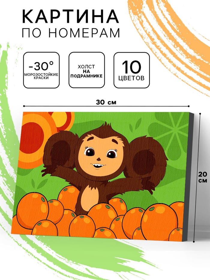 Картина по номерам с подрамником «Чебурашка и апельсины», 20×30 см 10 фото