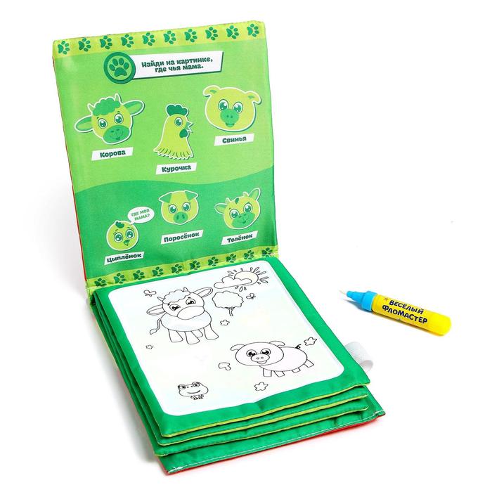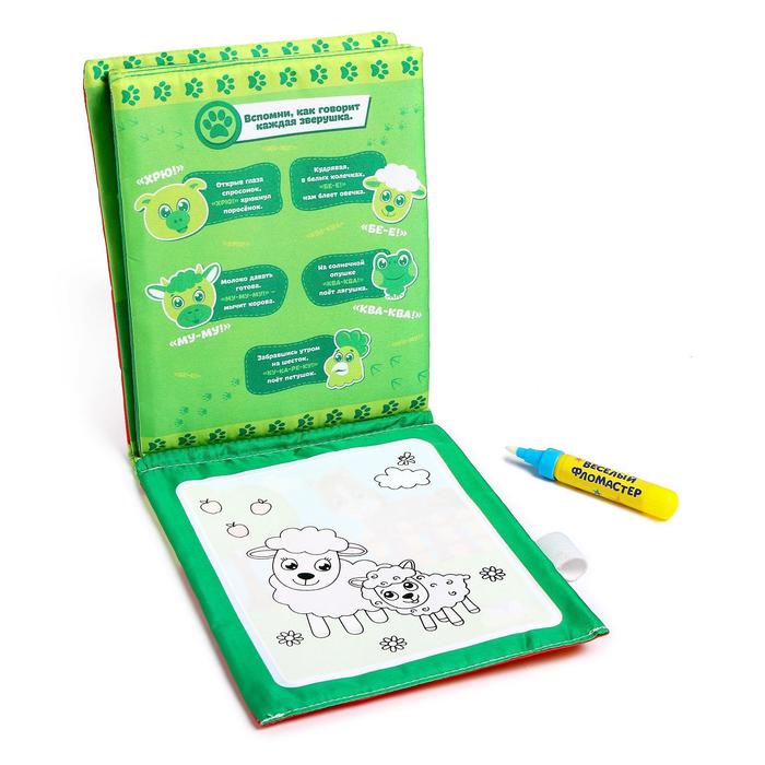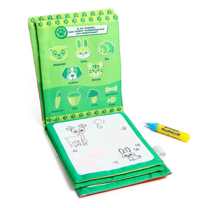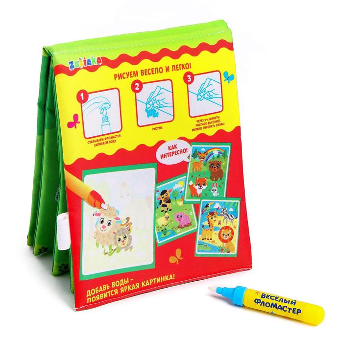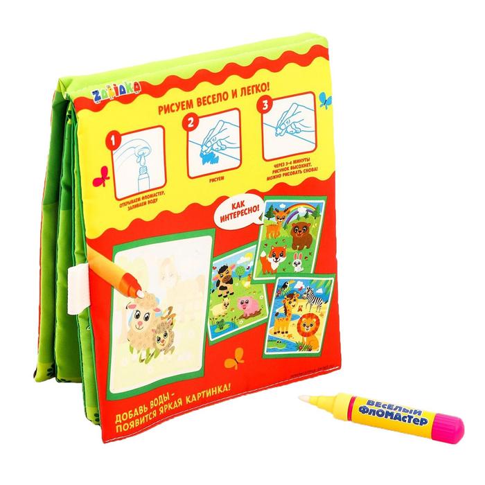 Раскраска - книжка детская водой «Весёлые животные», многоразовая, с водным маркером 7 фото