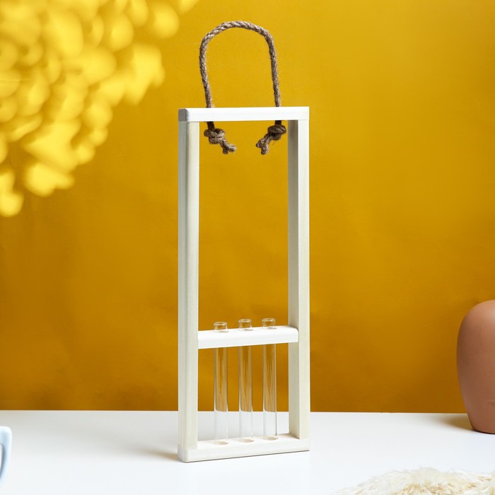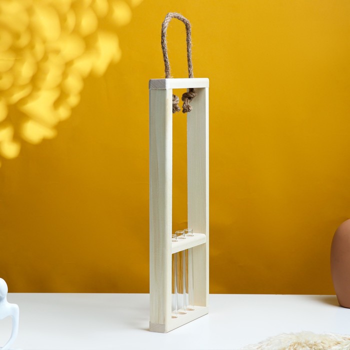Подарочный ящик «Рамка», 46×15×4 см, деревянный, 3 колбы, ручка - верёвка 4 фото