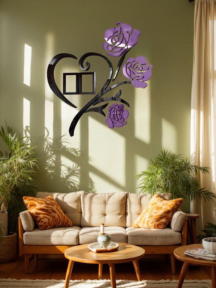 Наклейка интерьерная с фоторамками TAKE IT EASY «Розы», декор настенный, панно 50×50 см, рамка 11×8 см 6 фото