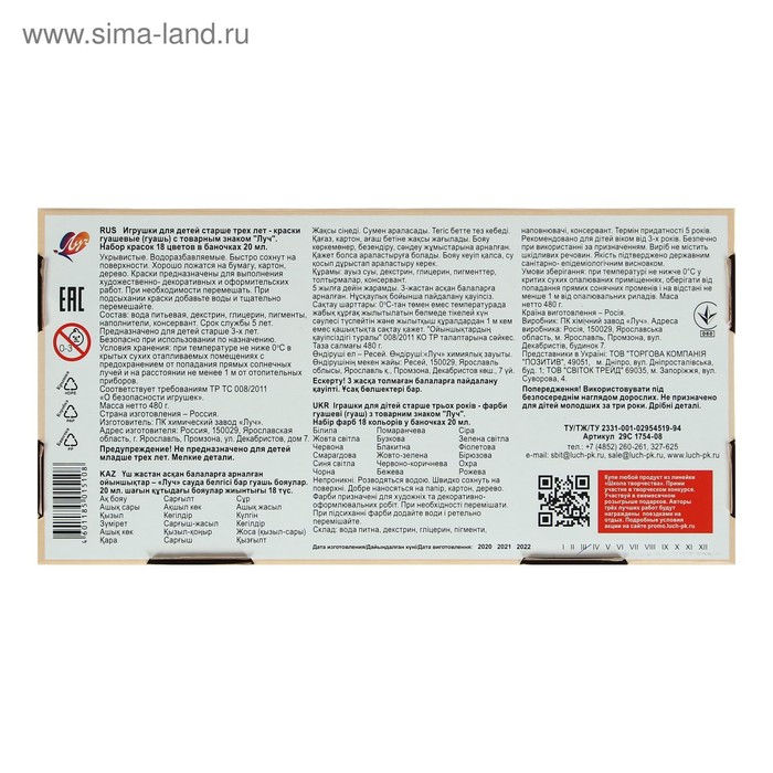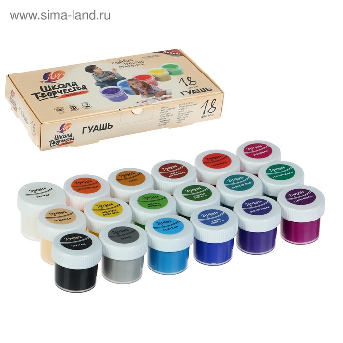 Гуашь 18 цветов × 20 мл «Школа творчества» 5 фото