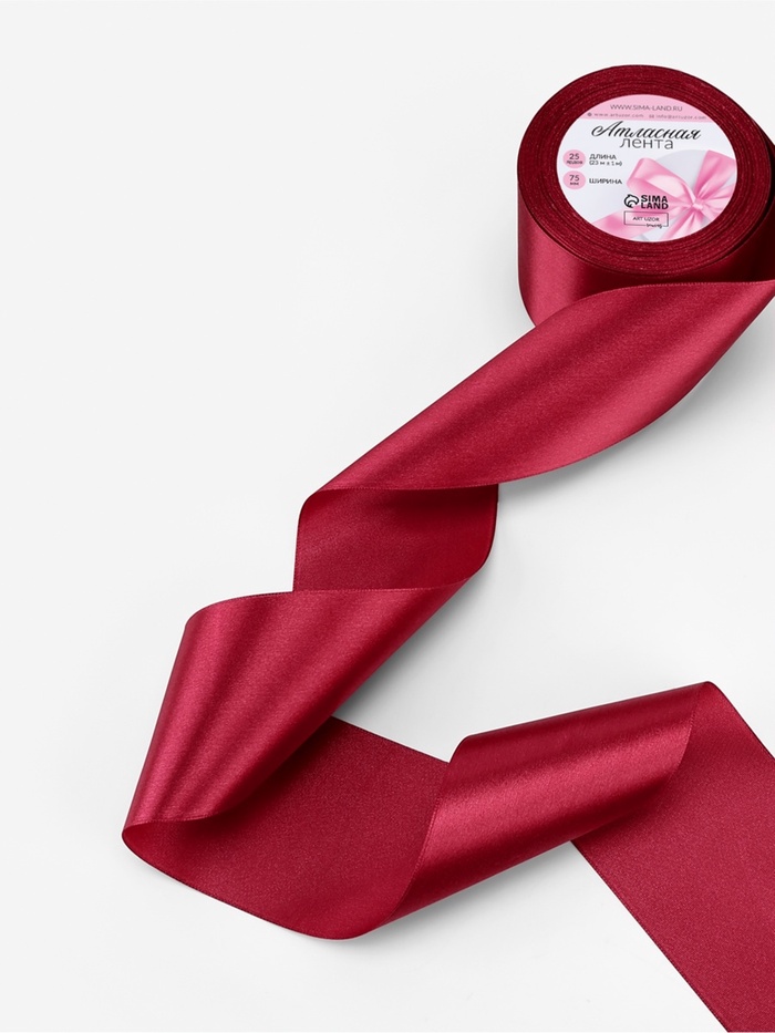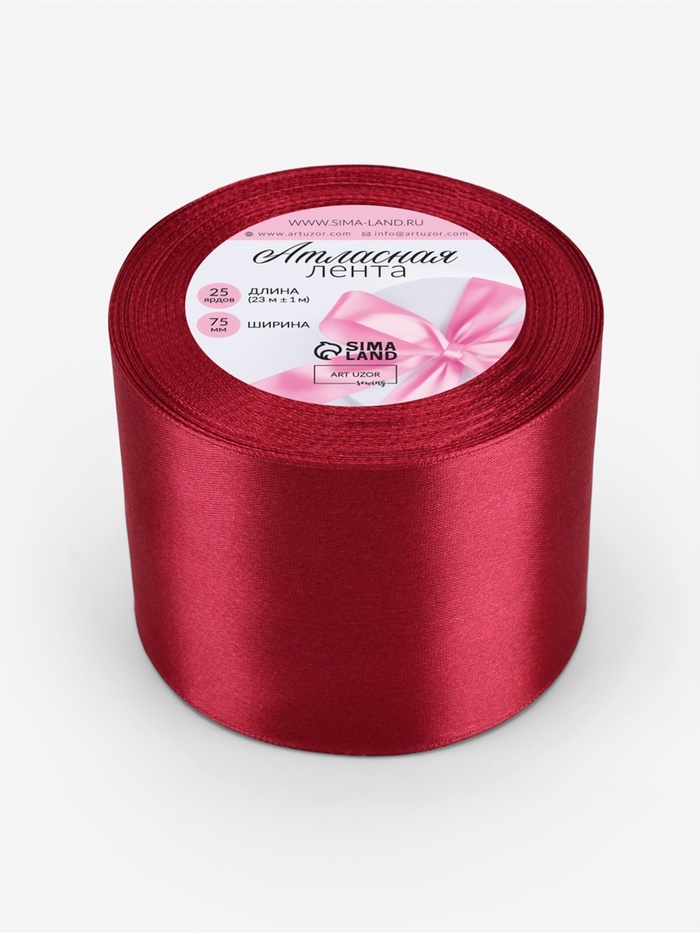 Лента атласная, 75 мм, 23±1 м, бордовая №37 5 фото