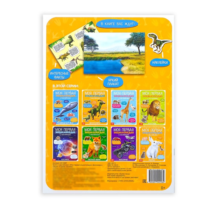 Книжка с наклейками «Моя первая энциклопедия. Динозавры», формат А4, 8 стр., плакат 5 фото