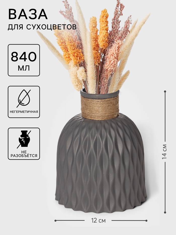 Ваза для сухоцветов Wikels, пластик, 12×14 см, серая 3 фото